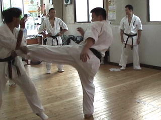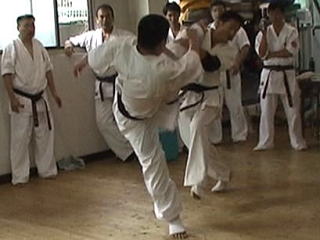 審査の方は、本部道場の高校生で、少年部の黒帯を所持している篠田儀隆君が一般部の黒帯の審査として、型と10人組手を行いました。稲毛・おゆみ野道場からは白石さんも10人組手を達成し1級合格となり、次はいよいよ黒帯を目標に頑張ってもらいたいと思います。